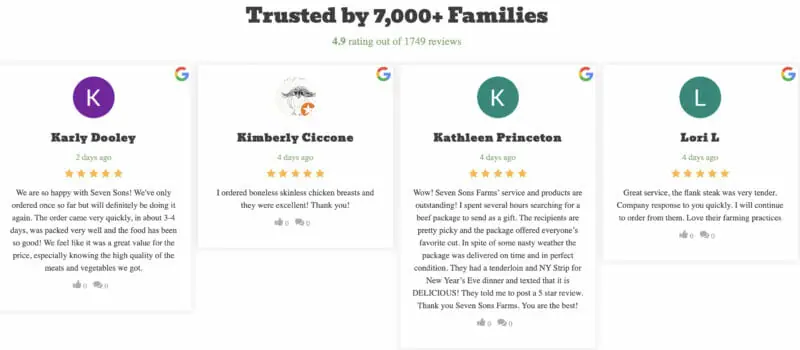 For example, the following Google reviews on the Seven Sons website tell visitors a lot about the quality of products and services. People will be able to tell how soon they can expect to get their orders and what types of cuts are included in the package. These are all essential details that could help people make a buying decision.