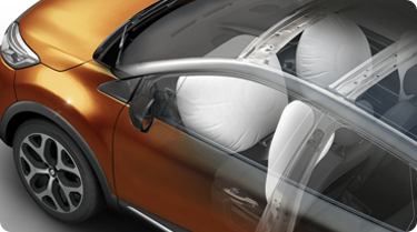 In the event of impact, the Captur is equipped with high-efficiency front airbags, head/ thorax side airbags and efficient pressure sensors to detect impact.