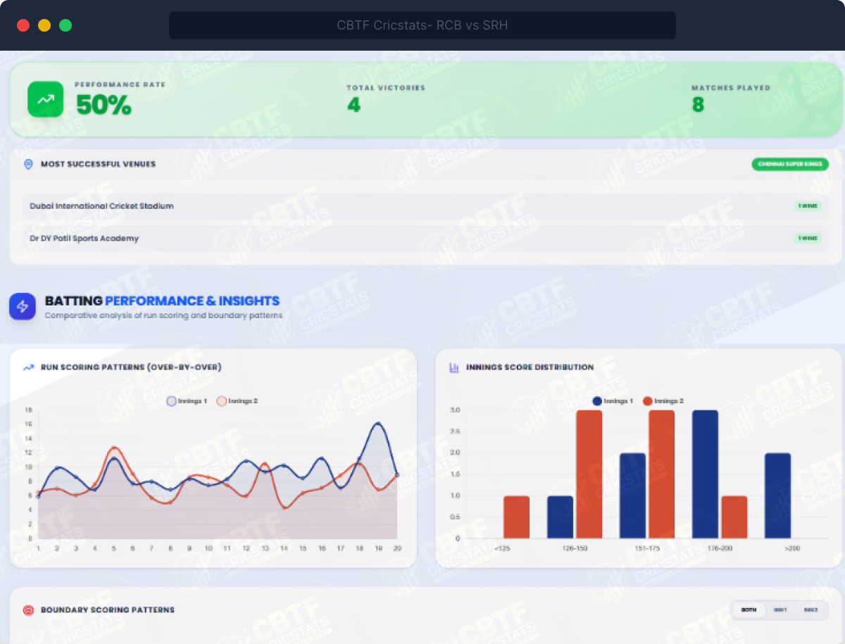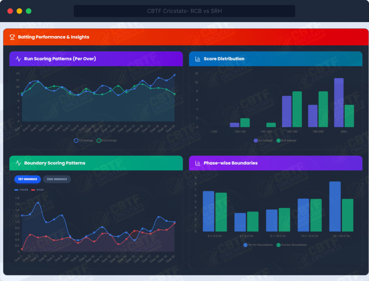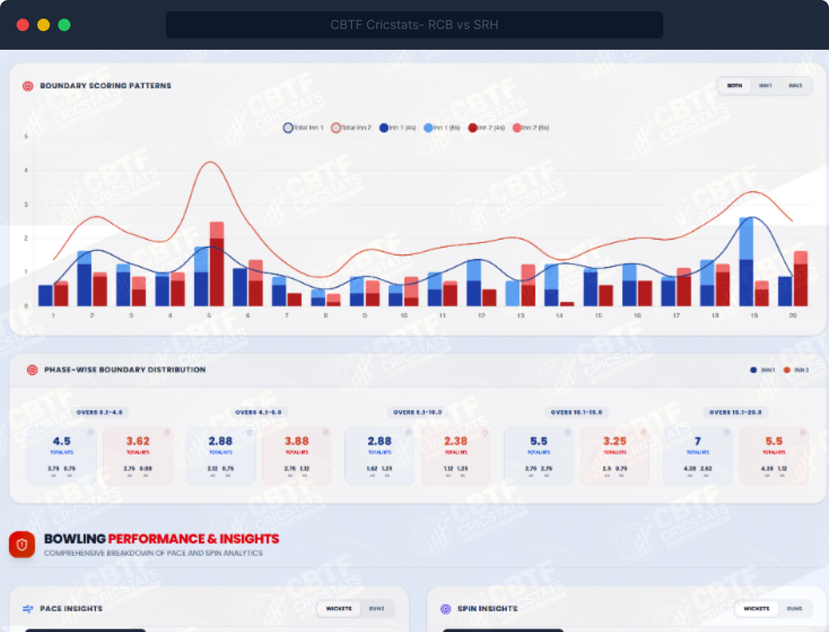 - Boundary scoring patterns: fours and sixes per over, phase-wise breakdown